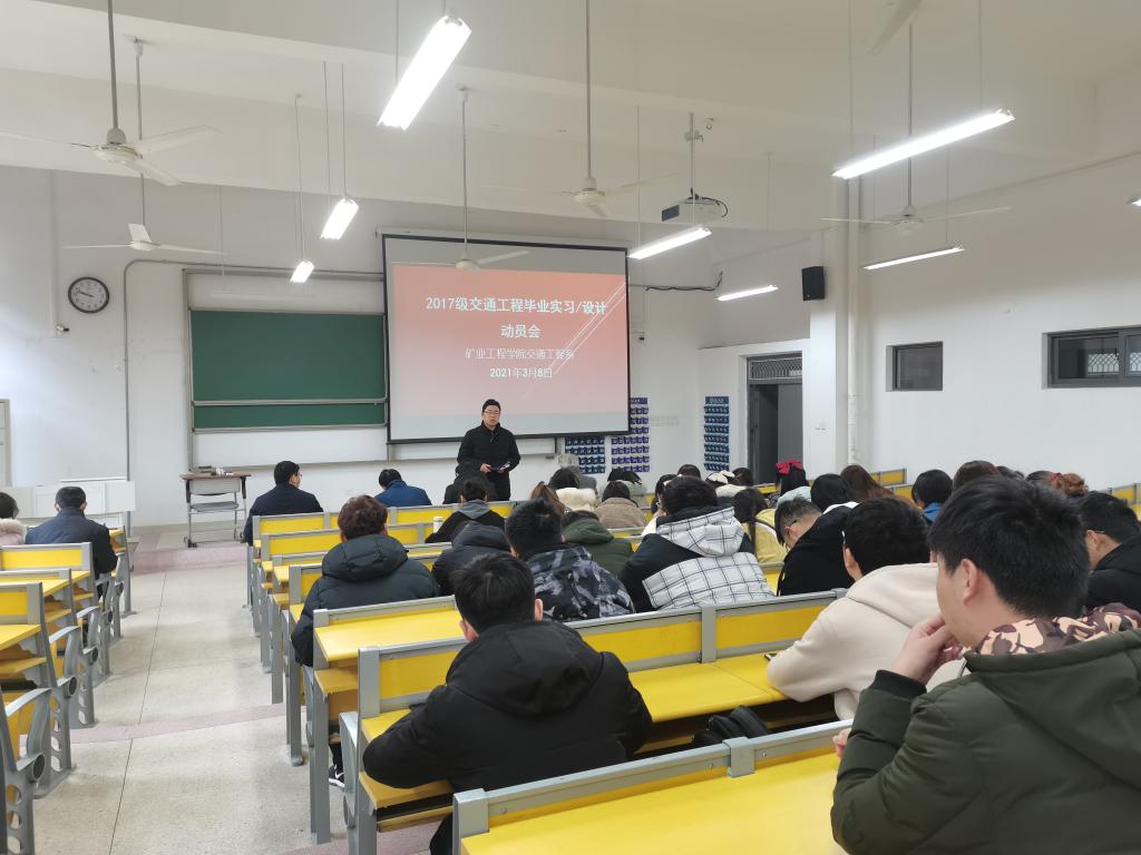 最后,采矿工程、交通工程两专业对毕业实习和毕业设计分组及计划安排进行了布置和说明。采矿工程、交通工程专业毕业实习和毕业设计指导老师和2017级全体学生参加了动员会。