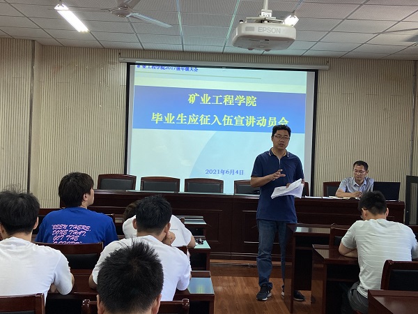 为贯彻落实学校2021年征兵工作精神,扎实做好征兵宣传工作,激发广大学生参军报国热情。6月9日中午,矿业院在宁远楼A410会议室召开2021届毕业生应征入伍宣讲动员会。会议由学院党委副书记张向林主持。学院毕业班辅导员、毕业生代表80余人参会。