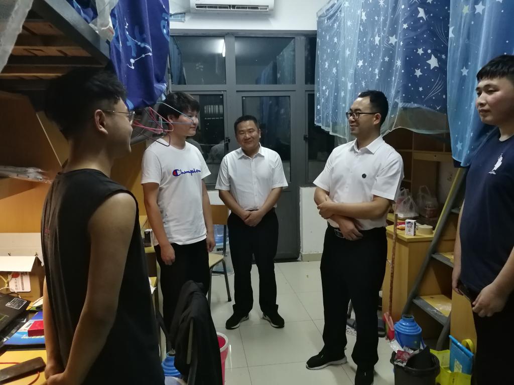 在对毕业生宿舍的走访中,院领导与毕业生亲切交谈,询问同学们的毕业感受以及离校准备情况,深入了解同学们毕业去向、就业考研情况。希望即将就业的同学们在新的岗位上积极进取,勤奋工作,争创佳绩,用自身的实际行动回报社会,为母校争光;希望升学的同学们在接下来学习科研的道路上奋力拼搏,勇攀高峰。也希望广大毕业生保持一颗良好的心态,人生有起有落,有成功有失败,成功了要淡定平和,暂时遇到了困难,也不要气馁,以积极进取的心态面对各种挑战;母校永远是同学们坚强的后盾,希望毕业生同学常回母校看看。同时叮嘱毕业生要做到文明离校、安全离校。