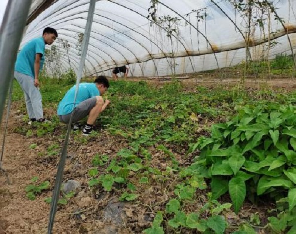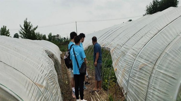 团队成员参观蔬菜大棚(团队供图)