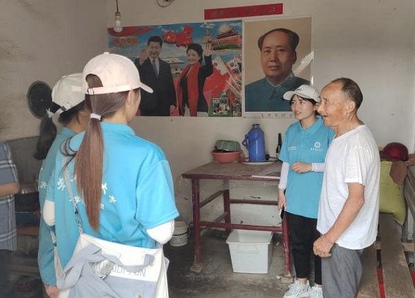 团队成员宣传“建设美丽乡村”(团队供图)