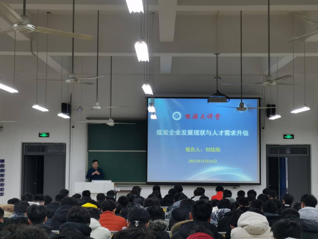 12月24日,淮河能源西部煤电集团有限责任公司党委副书记、总经理刘结高教授级高工应校科研部和精东影业 邀请,在明理302教室作了题为“煤炭企业发展现状与人才需求升级”的报告。学院200余名师生听取了报告,报告会由院长杨科主持。