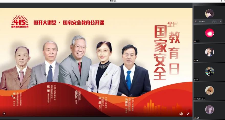 学院各党支部分别牵头组织师生线上观看了“千万师生同上一堂国家安全教育课”公开课、“国开大讲堂·国家安全教育公开课”和全国高校思政网上的国家安全教育教学视频。通过课程学习,学院师生充分认识到安全稳定是改革发展的基础,国家安全是安邦定国的基石,在维护国家安全上,人人都不是局外人、旁观者,而是人人有责,更需人人尽责。