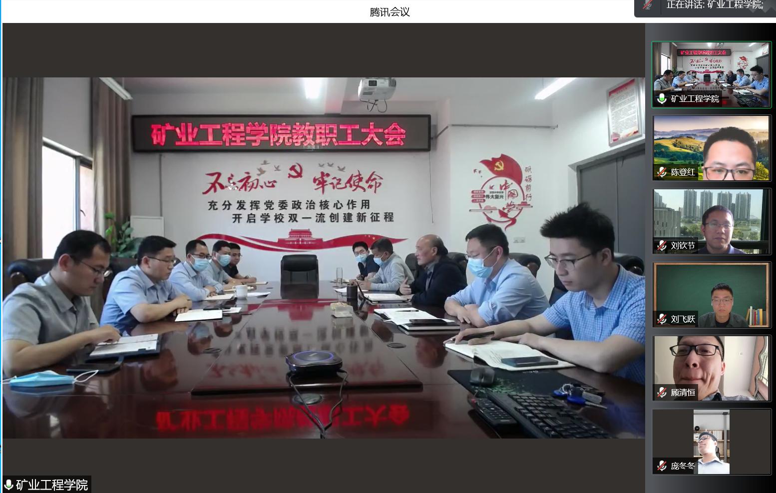 5月6日上午,矿业与工程学院通过线上线下相结合的方式召开全体教职工大会,会议由学院党委书记盛鹏飞主持,学院领导班子成员及全体教职工参加会议。