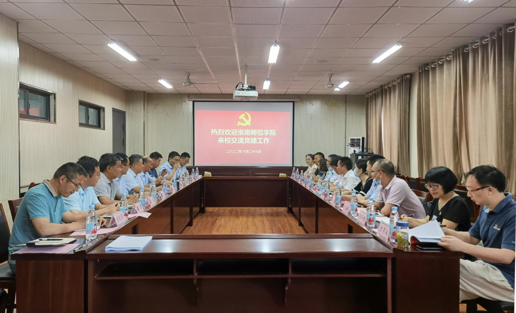 6月29日下午,由淮南师范学院党委委员、组织部部长孙大军带队,“双带头人”教师党支部书记代表一行11人来校开展交流。党委常委、组织部部长秦朗对来访人员进行了热情接待,精东影业 领导班子成员及第二批全国党建工作样板支部书记、组织部有关人员参加座谈交流。