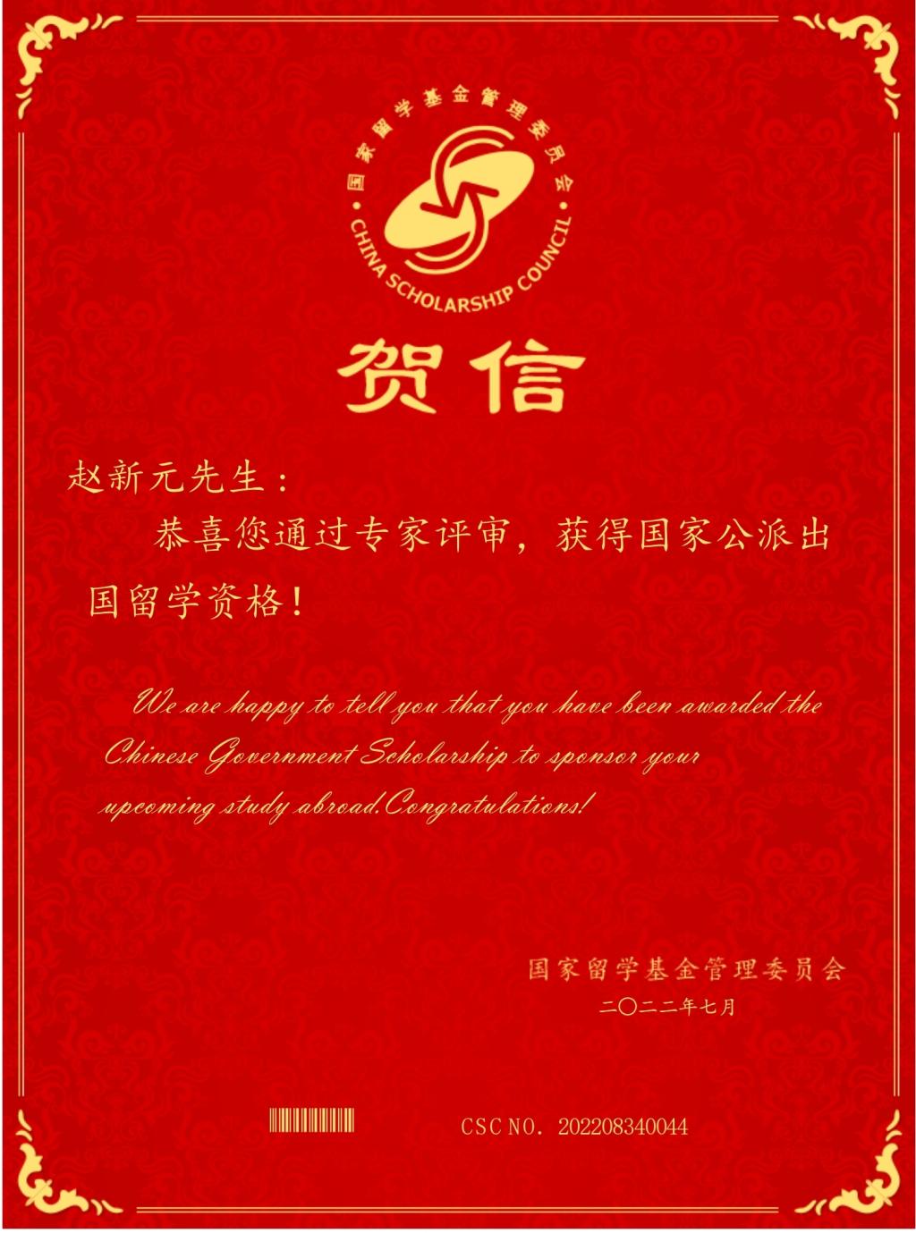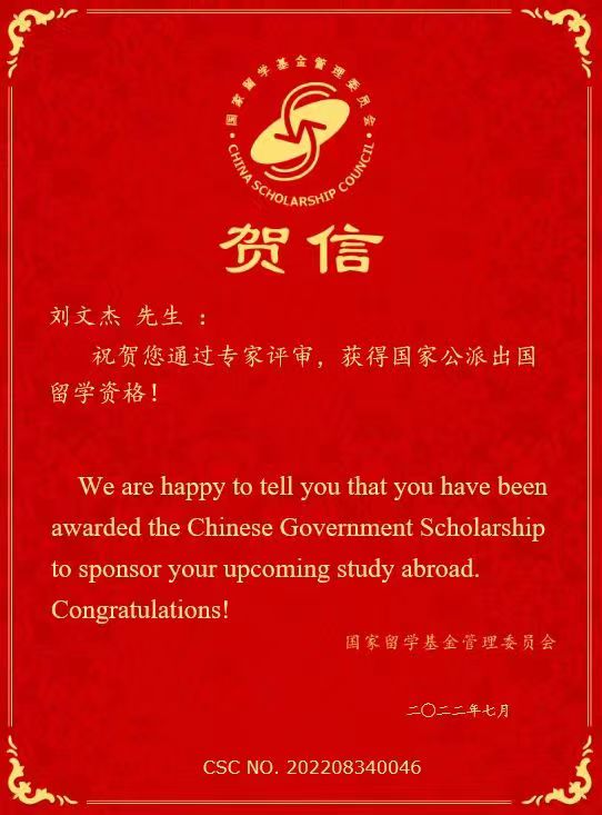 近日,国家留学基金委(CSC)公布2022年国家公派联合培养博士研究生项目录取结果,精东影业 刘文杰、吕鑫、赵新元、周俊4名博士研究生获得国家建设高水平大学公派研究生项目资助,拟赴澳大利亚新南威尔士大学(The University of New South Wales)、阿德莱德大学(The University of Adelaide)、加拿大渥太华大学(University of Ottawa)、芬兰奥卢大学(University of Oulu)等国外一流院校深造。