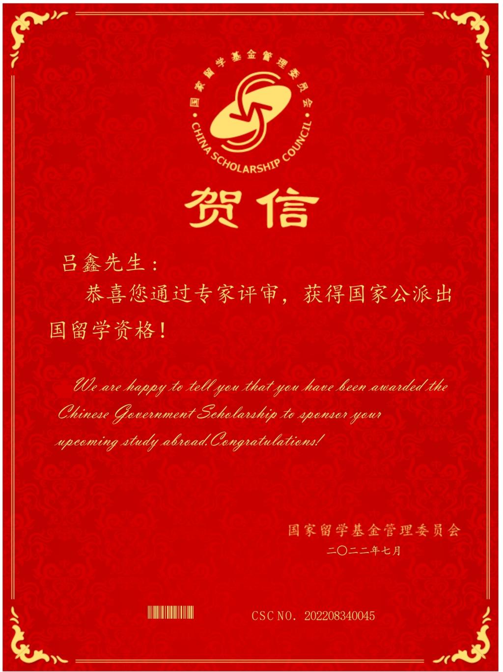 国家留学基金委贺信