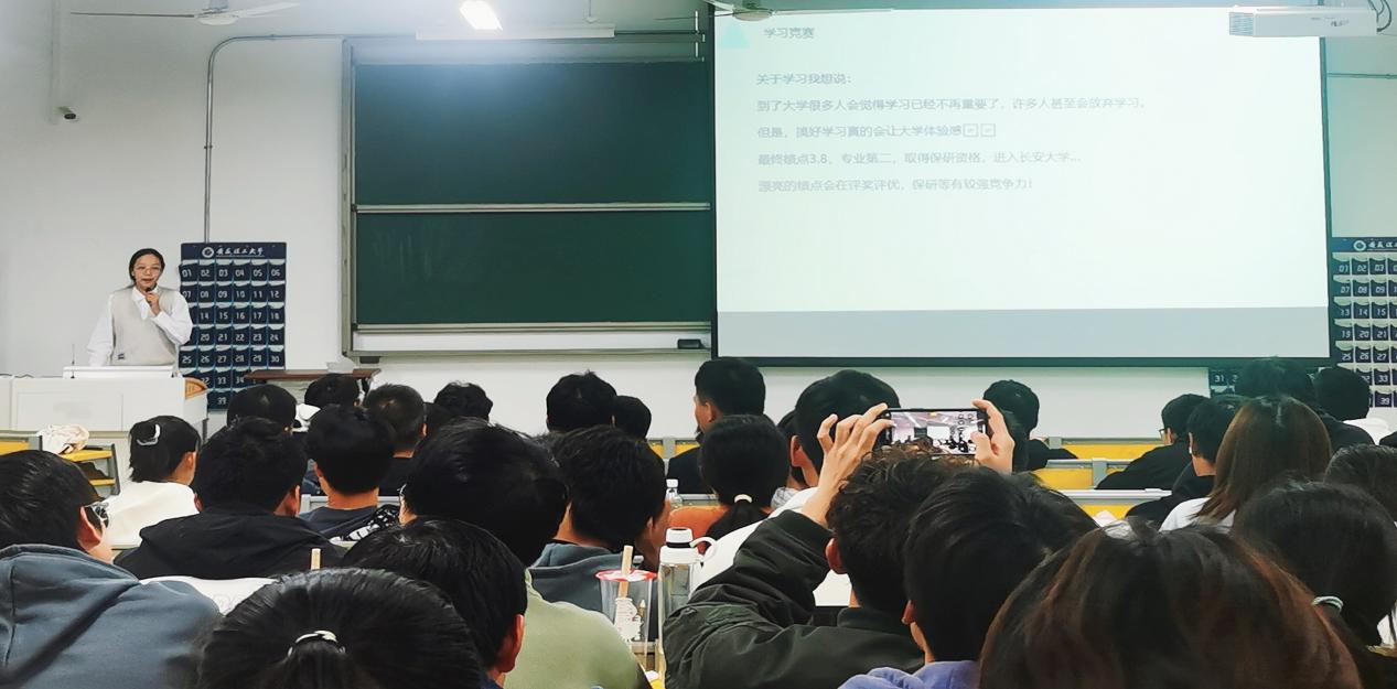 学院邀请已保研至长安大学的吴源哲同学为新生做了职业生涯规划分享。吴源哲围绕“大学初期方向的探索”展开话题,讲述了自己在专业学习、实践、保研等方面的经验与心得,她希望同学们在大学阶段学会高效学习,培养“输入-学习-思考-消化-输出”的方法和能力。同时,她建议同学们在参加科研竞赛的同时要保证专业课学习,不断提升专业技术水平和能力。