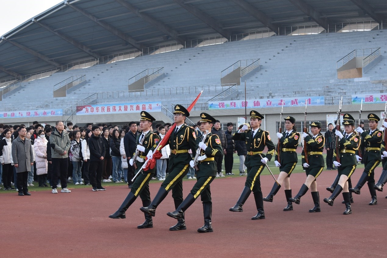 仪式最后,学院党委副书记田秋实号召全体同学将爱国心、强国志、报国行融入到学习和实践中,融入到学校建设与发展中,努力学习知识,不断增长本领,以拼搏激发创新动能,唱响新时代的青春之歌。