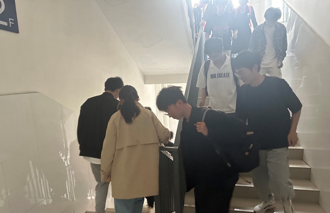 逃生演练过程中,学院师生在楼层疏散协调员、楼道护导员引导下,按照预定疏散路线,有序撤离办公学习场所,迅速到达指定安全区。疏散演练井然有序,达到了预期的效果。