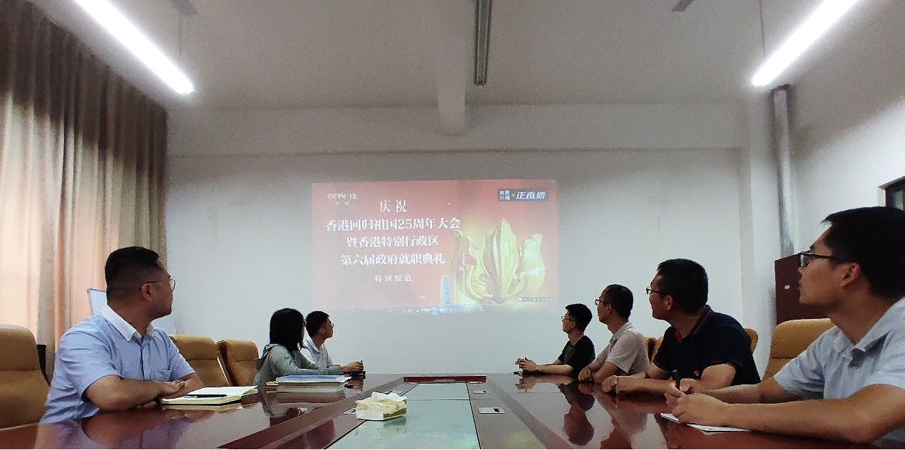 7月1日上午,支部党员齐聚宁远楼A310会议室,聚精会神地观看了“庆祝香港回归祖国25周年大会暨香港特别行政区第六届政府就职典礼”直播,并结合自身成长经历展开交流讨论。大家深情回顾了25年前香港回归祖国无比震撼的场面,见证了香港回归祖国后党领导香港人民应对重大挑战、抵御重大风险、克服重大阻力、解决重大矛盾的强大政治定力和战略定力,看到了在党中央的坚强领导下香港开创新局面、实现新飞跃的巨大发展活力。