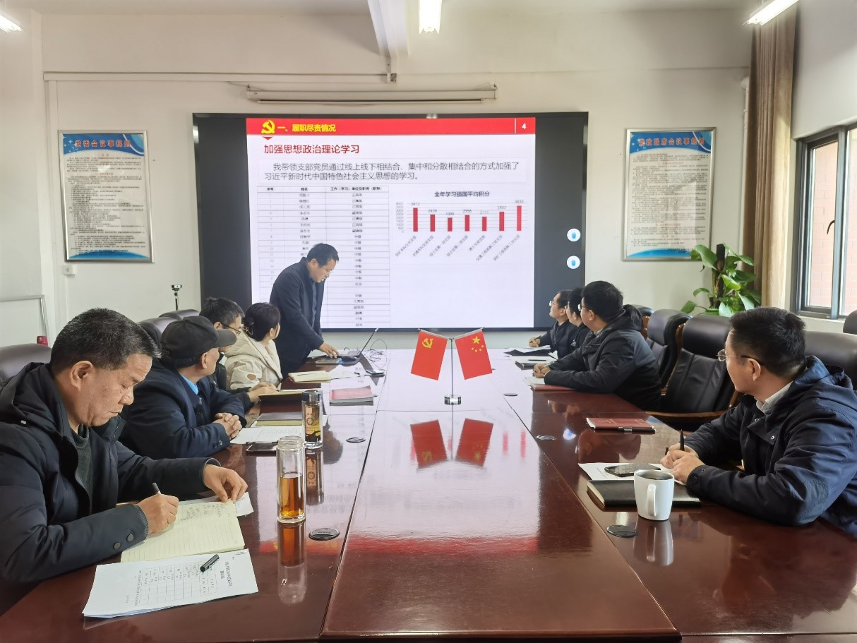 盛鹏飞从工作亮点、存在的问题、改进措施等方面对各党支部工作进行了逐一评价。他指出,学院各党支部一年来能够围绕“一支部一品牌”创建稳扎稳打开展工作,在理论学习、主题党日活动、志愿服务等方面形式多样,注重党建与业务工作融合,较好的体现了基层党组织的活力和战斗力。他强调,2024年各党支部要继续加强基层党组织建设,坚持问题导向,不断提高党支部标准化、规范化水平;要坚进一步凝练支部工作品牌,围绕学院和支部中心工作,丰富品牌内涵,确保党建工作抓出特色、抓出成效;要充分发挥党员先锋模范作用,进一步推动党建业务双融双促,做好党建与人才培养、学科建设、思政育人的深度融合。