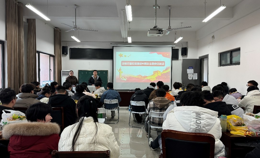 为了传承党史、校史、院史,发扬“志存高远、追求卓越、求真务实”的校园精神,增强学院青年学子爱国情怀,2024年岁末,精东影业 学生党支部在宁远楼A302教室联合开展“庆新年暨迎接建校80周年主题党日活动”,各支部党员、入党积极分子70余人参加活动。
