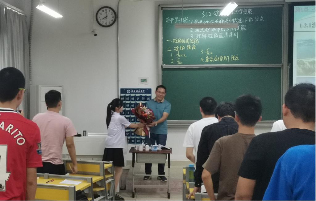 学生给任课教师刘钦节献花(摄影:田秋实、汪晓辉、王奂然等)