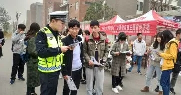 活动现场,淮南市交警支队的宣传民警向同学们介绍了“12.2全国交通安全日”的由来,并结合当前辖区安全行车特点和近期交通安全形势,讲解了如何提高安全防范意识和面对交通事故时如何自救和救助他人的基础常识,以及如何正确拨打报警电话等方面的交通安全知识。