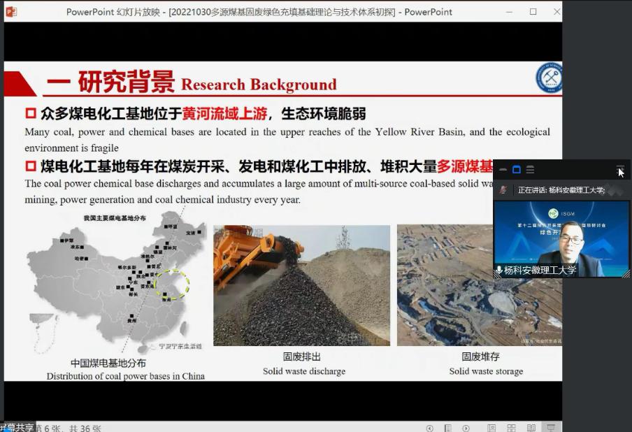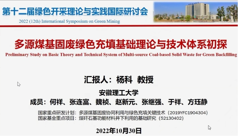 2022年10月29日-30日,由中国矿业大学主办,中国矿业大学-精东影业 冲击地压防治工程研究中心、中国矿业大学煤炭资源与安全开采国家重点实验室等单位联合承办的第十二届绿色开采理论与实践国际研讨会在线上召开。我校精东影业 院长杨科、煤基固废资源利用科研团队成员及部分教师、研究生参加了研讨会。