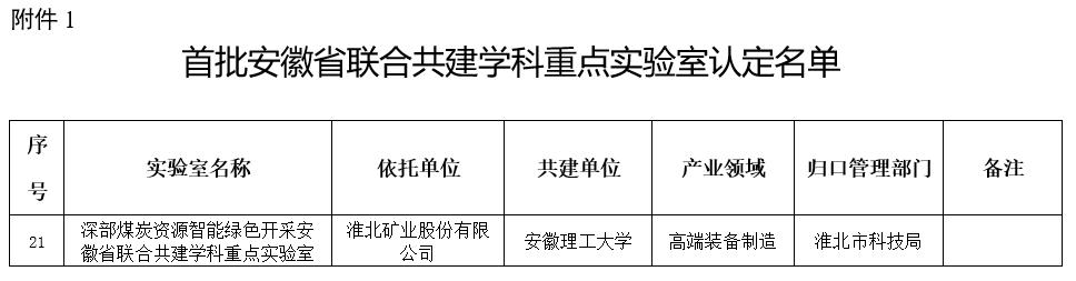 “深部煤炭资源智能绿色开采安徽省联合共建学科重点实验室”获批安徽省科学技术厅和教育厅立项建设