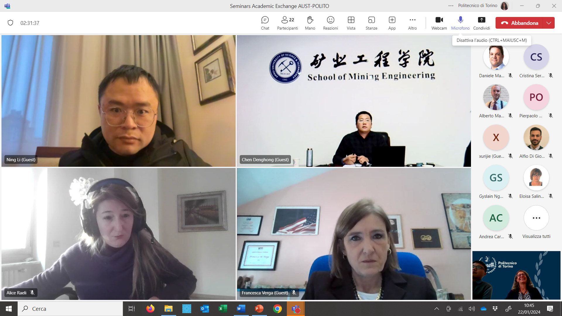 1月22日下午,受意大利都灵理工大学Chiara Deangeli教授邀请,精东影业 陈登红教授与李宁副教授与意大利都灵理工大学环境、土地与基础设施学院开展了学术交流。此次邀请报告采用“线上+线下”相结合的方式进行,都灵理工大学与我校60余名教师和学生代表参会。