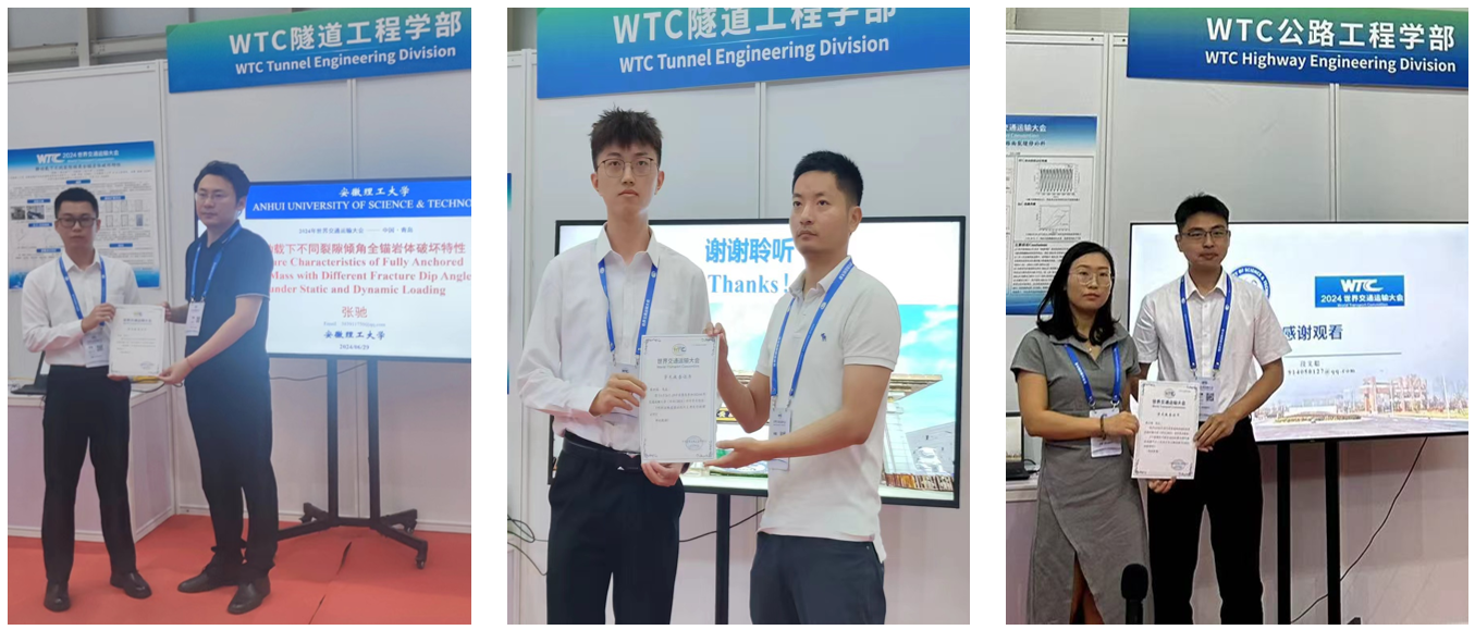 会议期间,张驰和梁洪瑞在隧道施工与灾害控制论坛分别作《静动载下不同裂隙倾角全锚岩体破坏特性》和《明挖法隧道箱涵段内支撑变形规律分析》汇报,段文聪在道路新型材料论坛作《干湿循环下纳米SiO2与聚丙烯纤维改性煤矸石二灰混合料三轴试验与NMR试验研究》汇报。
