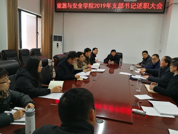 1月9日中午,能源与安全学院在宁远楼A406会议室召开了2019年度党支部书记述职评议会。学院党委领导班子成员、全体党支部书记、师生代表等近20人参加了会议。会议由学院党委书记华心祝主持。