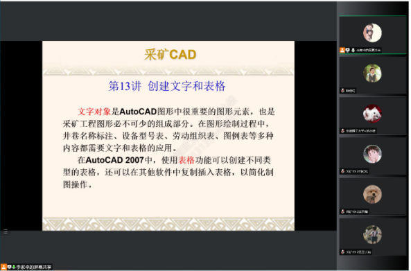 《采矿CAD》是操作演示性课程,注重信息化教学的应用。李家卓老师在授课过程中重难点把握准确,灵活运用信息化教学手段提升教学效果,采用边讲解边操作授课方式,及时与学生通过视频连线方式进行互动,增强了学生的CAD操作水平和运用能力,提升了信息化教学水平。