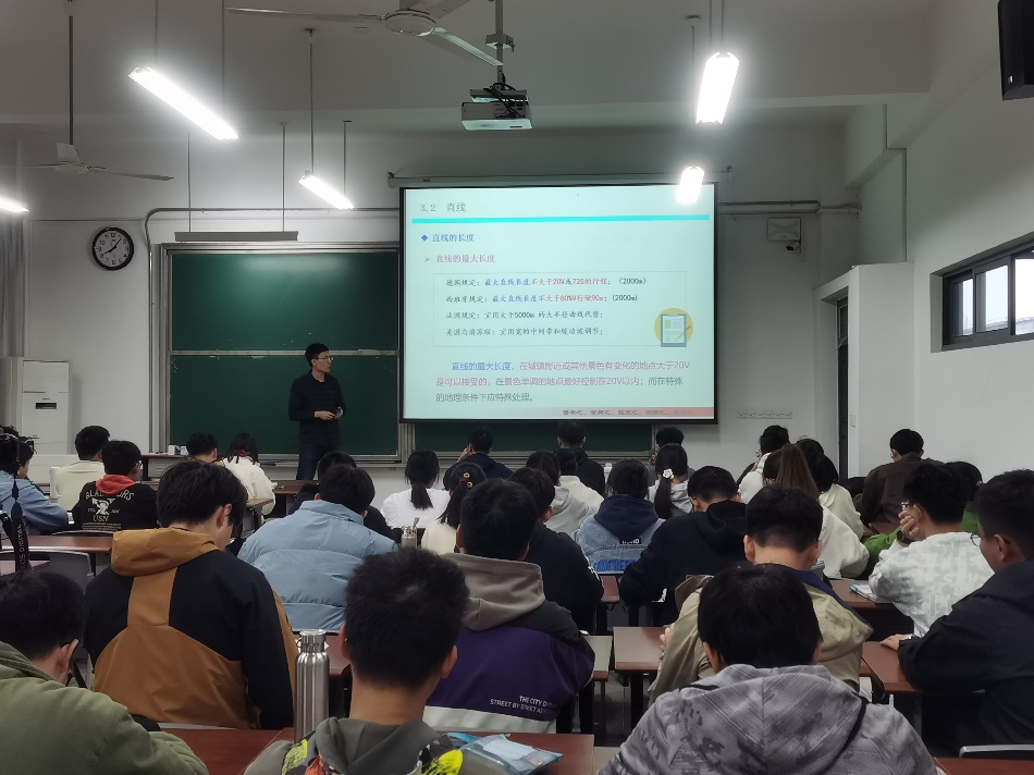 教学观摩课由徐乃忠老师主讲,徐老师以《道路勘测设计》课程中“道路直线段和曲线段的设计”为讲授内容,对课程教学内容讲解透彻,课件图文并茂,在教学过程中饱含激情,语言清晰。并在授课过程中引入翻转课堂的形式,在课程伊始将授课班级同学分成讨论小组,在课堂上采用学生小组汇报的形式检验学生学习成果,增强学生的课堂参与感。