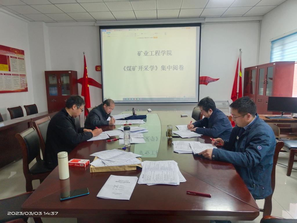 为提高课程建设质量和人才培养效果,加强课程组建设实效,结合专业认证课程目标与毕业要求的相关性,将教学考核标准落到实处,切实提升课堂教学质量。3月2日,学院《煤矿开采学》课程组教师在涂敏教授的带领下,在采矿工程系教研活动室开展了《煤矿开采学》专业核心课程试卷集中流水阅卷工作。